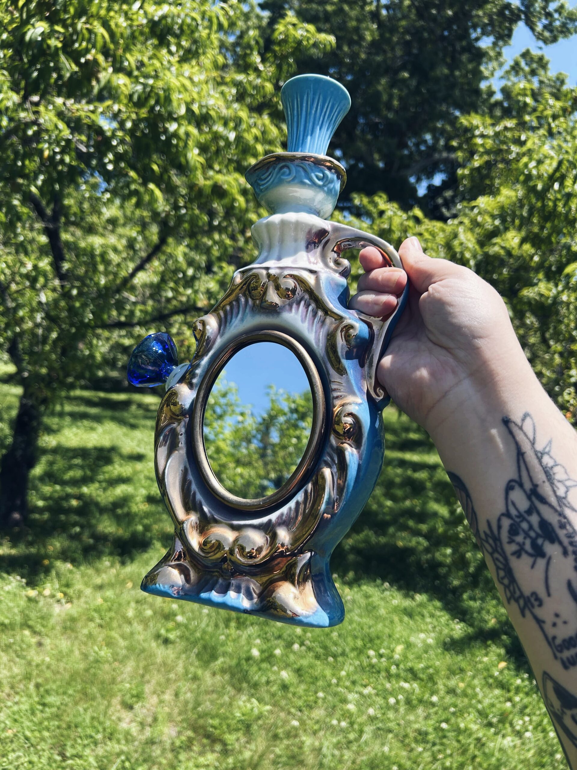 (Featured) Yes! That’s a mirror! This 1970s Jim Beam Reflections in Gold whiskey bottle was transformed for a different kind of reflection. Originally crafted to be a collectible, from the mirror to the gold accents, this is the definition of a stand out piece.