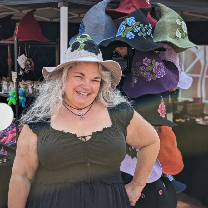 Salem Yule Marketplace Vendor WitchCraftHaven WitchCraftHaven handcrafts unique witchy items for others. They handcraft positive poppets, embroidered hats, wands, bells,